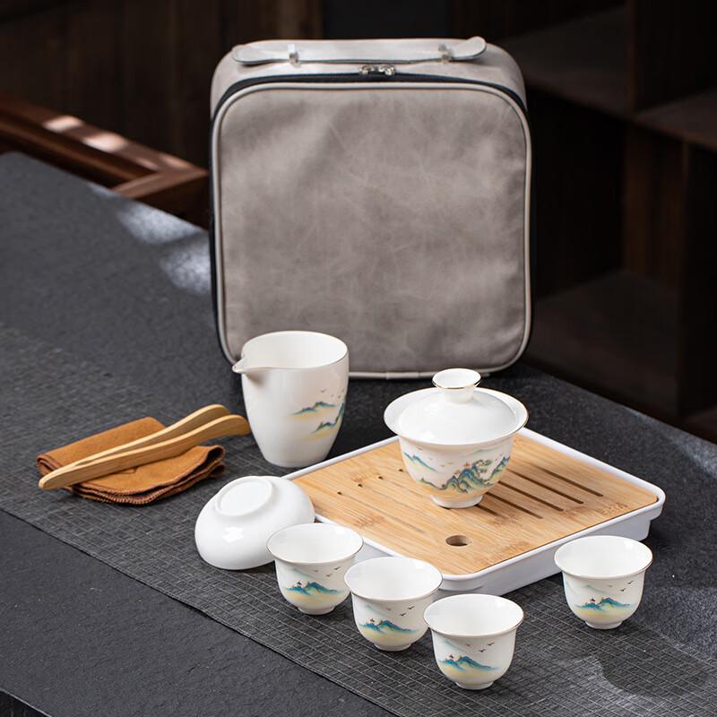Mutton-fat Jade Outdoor Travel Tea Set