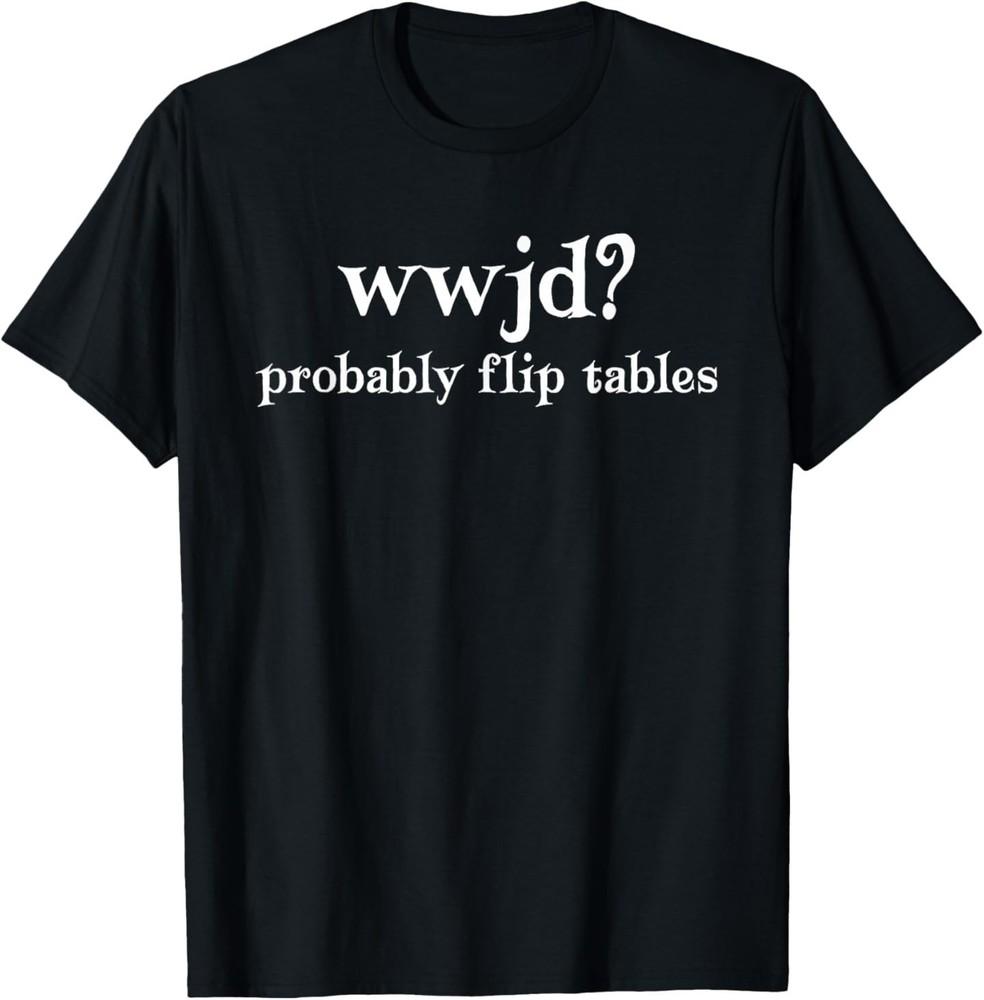 WWJD Pravděpodobně převrhne stoly Vtipné křesťanské humorné tričko