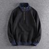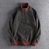 Men Autumn Winter New Style Loose Stand Collar Half Zip Trendy Sweatshirt Fleece Lined Thickened Color Block Casual Top Jacket