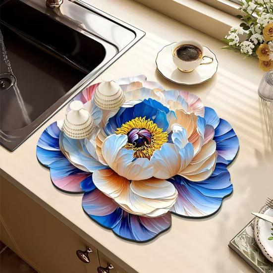 Rychleschnoucí materiál z křemeliny: Tato odkapávací podložka, vyrobená z vysoce kvalitní křemeliny, nabízí výjimečné rychleschnoucí vlastnosti.. Účinně absorbuje vlhkost a rychle odpařuje vodu, takže je ideální pro vlhké koupelny nebo kuchyně.. Tato vlastnost pomáhá předcházet tvorbě plísní a hub, což zajišťuje čistší a zdravější prostředí ve srovnání s tradičními látkovými podložkami.