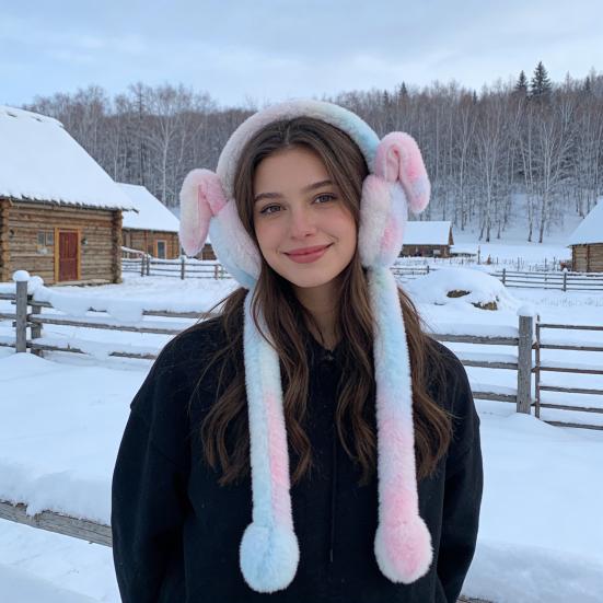 Dreamy Gradient Colors: Showcasing a soft and sweet gradient color palette of pink, blue, and white, these plush earmuffs evoke a fresh spring vibe while maintaining a cute and stylish look. The pastel tones are perfect for those who love whimsical and trendy winter fashion accessories.