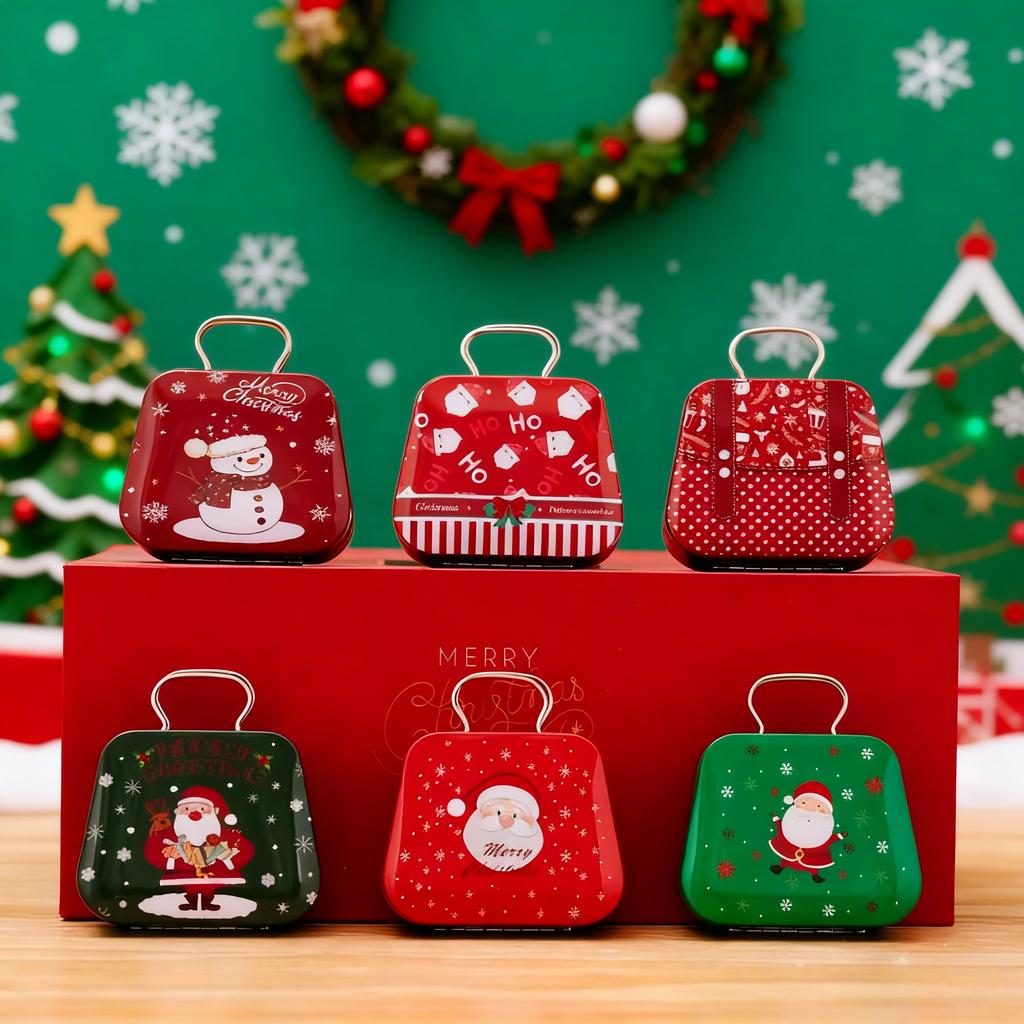 Festive Metal Purse Style Candy Container With Santa Snowman Design Adorable Mini Bag For Holiday Gift And Celebration Decor