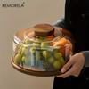 KEMORELA 1PCS Glass Food Storage Containers with Wooden Lid Kitchen Snack Fruit Candy Nut Sundries Storage Organizer for Kitchen