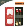 2PCS Stainless Steel Coffee Spoon Christmas Dessert Spoon Cake Fork Cartoon Christmas Tree Elk Spoon Fork Christmas Gift Box