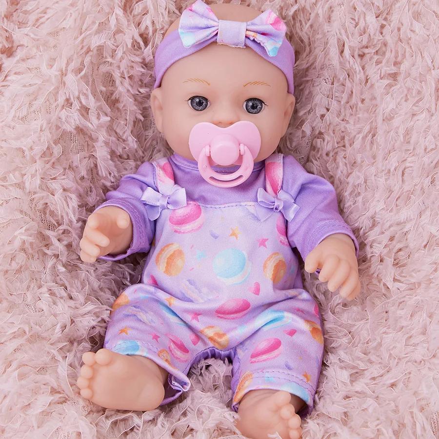 Lovely 30CM Reborn Doll with Purple Clothes Pacifier Realistic Silicone Reborn Baby Doll for Kids Birthday Gifts Collectibles