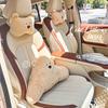 Plush Cute Bear Warm Car Headrest Auto Seat Head Support Neck Pillow Protector Rest Cushion Lumbar Pad Car Interior Accessorie