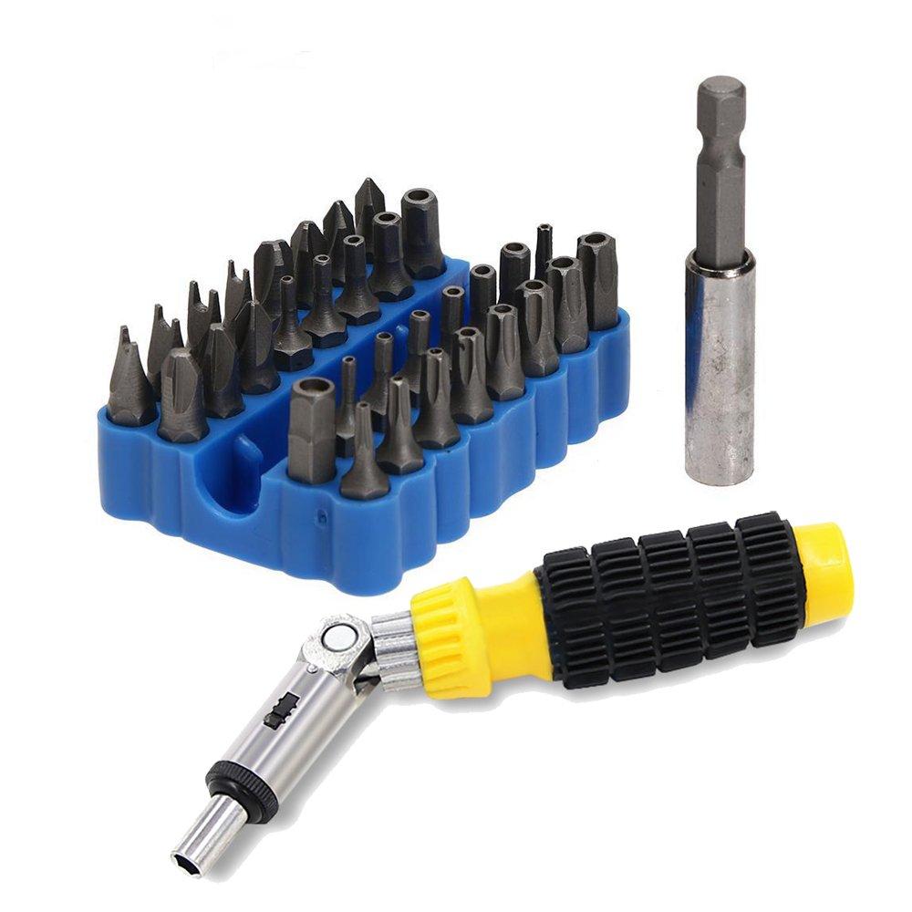 NUZAMAS 32-Piece Security Screwdriver Bit Set with 1/4" Extension Bar & Reversible Screwdriver for Home DIY Computer Phone Repair