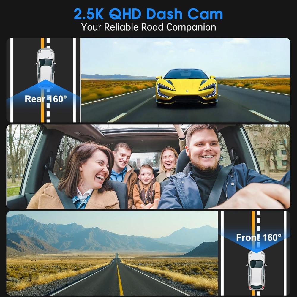 Dash Cam Front and Rear, 2.5K /1080P QHD Dual Dash Camera for Cars, Super Night Vision Dashcam, Loop Recording, 3.39” IPS, 64GB