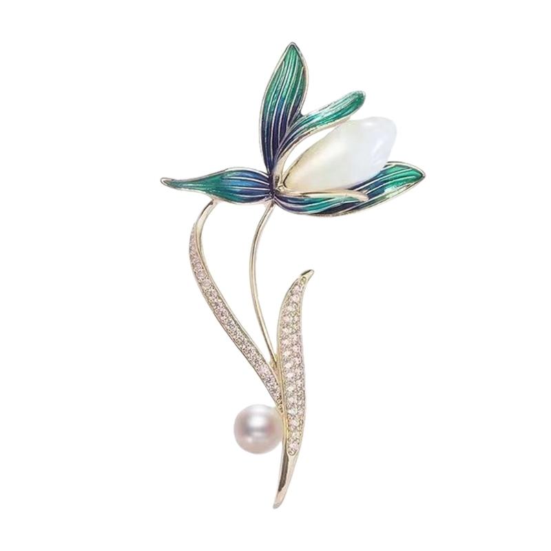 Elegant Magnolia Flower Brooch Sophisticated Pin Pearls Alloy Texture Clothing Jewelry Suitable for Women Present