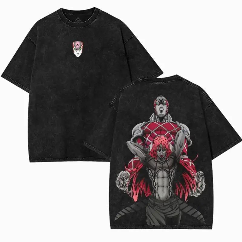 Hot Anime JoJo's Bizarre Adventure Diavolo Clothing Men Women Tshirts Washed Cotton Tee Retro Oversized T-shirt Harajuku T Shirt