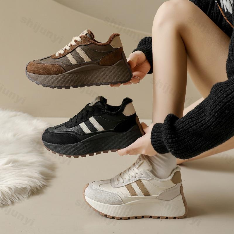Winter Women' Retro Warm Velvet Low Top Vulcanize Shoes Fashion Versatile Plush Comfortable Non Slip Chunky Cotton Sneakers