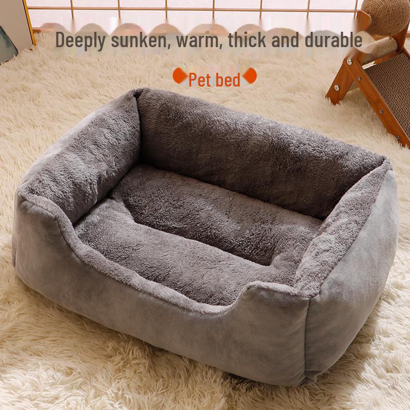 Zimní teplé hnízdo pro mazlíčky Útulné čtvercové lůžko pro malé a střední psy - Celoroční, silná podložka odolná proti chladu.