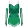 Dámský řasený síťovaný přehoz střapce taneční trikot třpytivé kamínky nastavitelná ramínka výřez třásně body