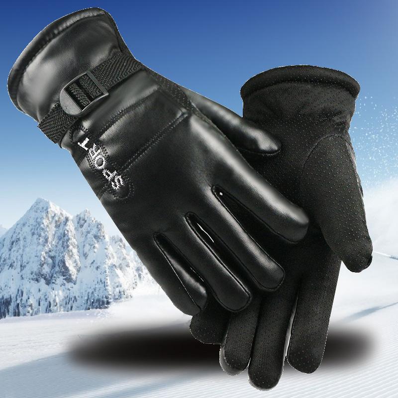 Zimní lyžařské rukavice s hromadou zahuštěné teplé pánské venkovní elektrické vozidlo chladu a větru odolné voděodolné kožené pánské rukavice
