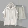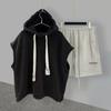 Pánská letní jednobarevná ležérní sportovní souprava s kapucí vesta + rovné pětibodové kalhoty s potiskem písmen volný dvoudílný set