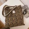Leopard Print Tote Bag Women Large Capacity Canvas Shoulder Bag Reusable Shopping Purse