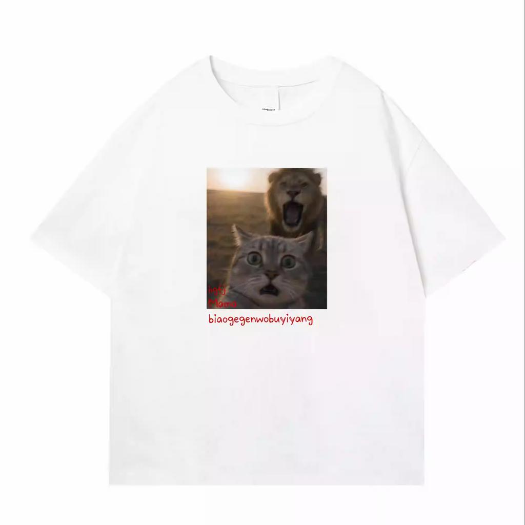 Cat emoticons pattern printed T-shirt Summer Leisure High-end Versatile Breathable Pure cotton Men's And Women's Y2K T-Shirt