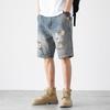 Summer American Casual Old Ripped Denim Shorts Men and Women Straight Loose High Street Five-point Pants