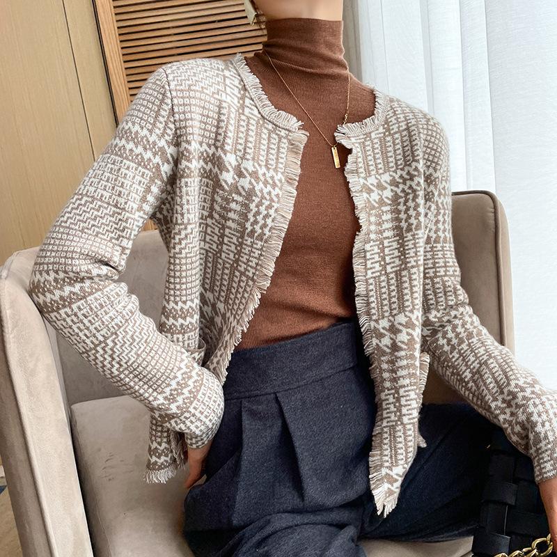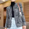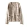 Knitted cardigan women's spring and autumn new fashion plaid color matching loose women's coat