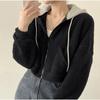 Krátká bunda z imitace jehněčí kožešiny pro ženy na podzim a zimu Korejský volný plyšový zateplený kardigan Top s kapucí na zip
