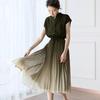 Léto Nový Absolvent Postupná Změna Zelený Límec Pas Design Plisované Šifonové Šaty Dámské Letní Dlouhé