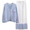 Pajamas Women's Autumn and Winter Sweet Fragrant Style Houndstooth Cardigan Elegant Soft Thickened Warm Knitted Home Clothes