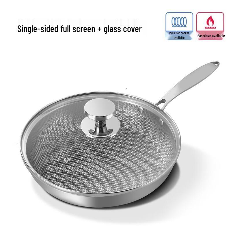 Stainless Steel Honeycomb Frying Pan with Glass Lid