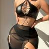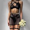 Lingeries Sexy Women Black Cross Halter Hollow Bra Brief Skirt Starry Transparent Underwear Set 3 Piece Erotic Lingerie Sets