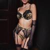 Women'S 3 Pieces Set Exquisite Leopard Lace Embroidery Lingerie Sets Sexy Erotic Costumes See Through Bra Panty With Garters