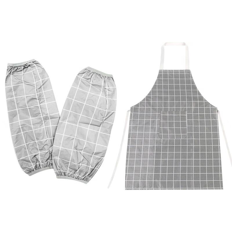 Waterproof Oil-Proof Plaid Kitchen Apron & Sleeves Set