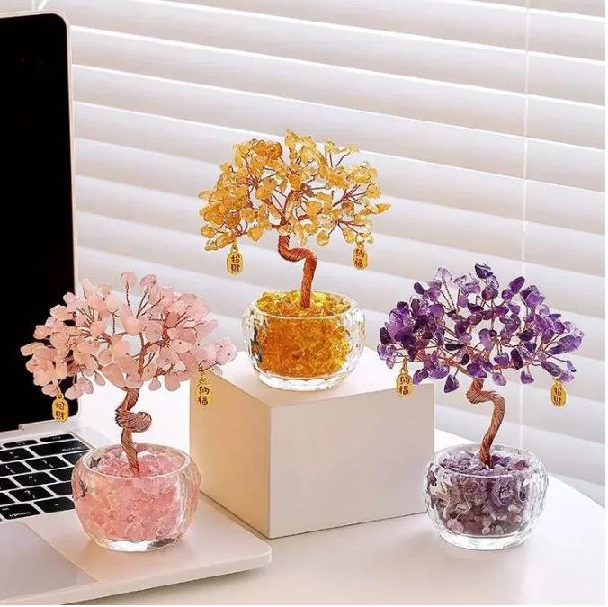 Crystal Money Tree Home Workstation Ornament Crystal Craft Stone Decoration Desktop Gift