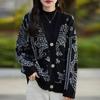 V-neck Ink Jacquard Lazy Wind Sweater Women's Autumn and Winter Loose Knitted Cardigan Design Jacket