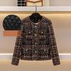 Nové podzimní černé francouzské černo-zlaté krátké sako s malou vůní pro ženy v retro tvídovém saku