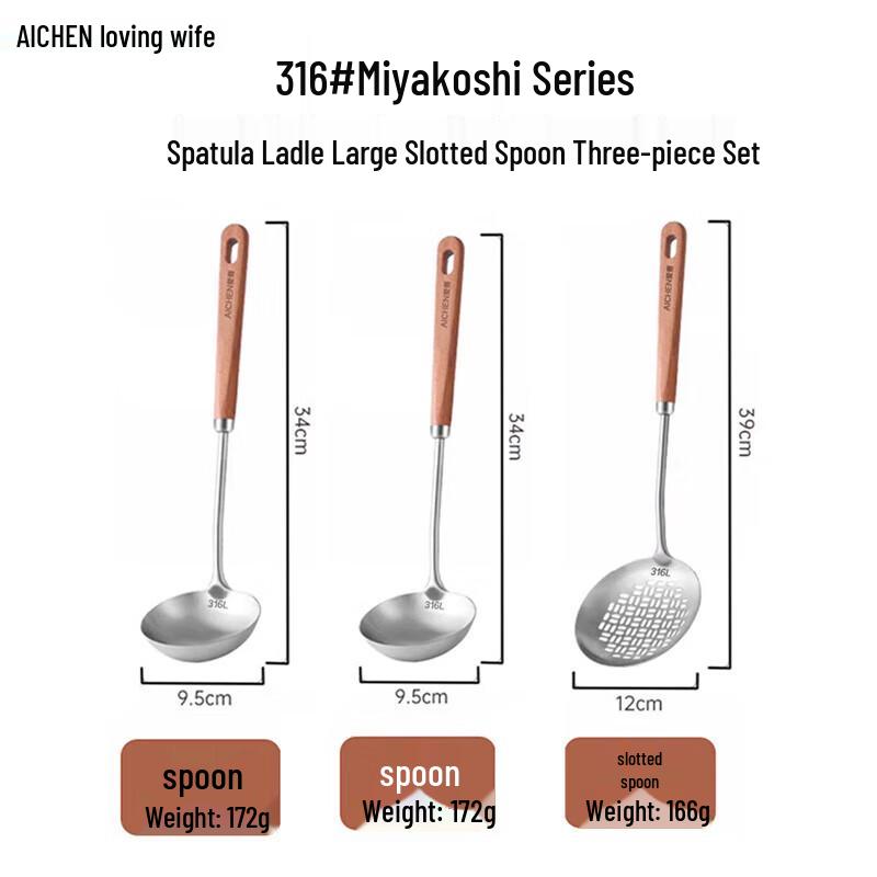 AICHEN 3-Piece 316 Stainless Steel Kitchen Utensil Set