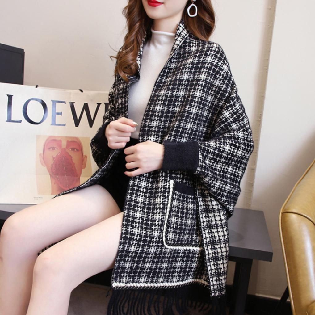 Cashmere Winter Women's Tweed Pocket Cardigan Shawl Cape