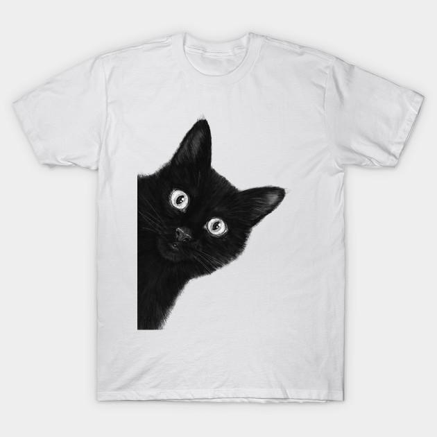 Men Black Print T-shirt Black Cat No-Cut Transfer Paper Print Cotton Tshirt