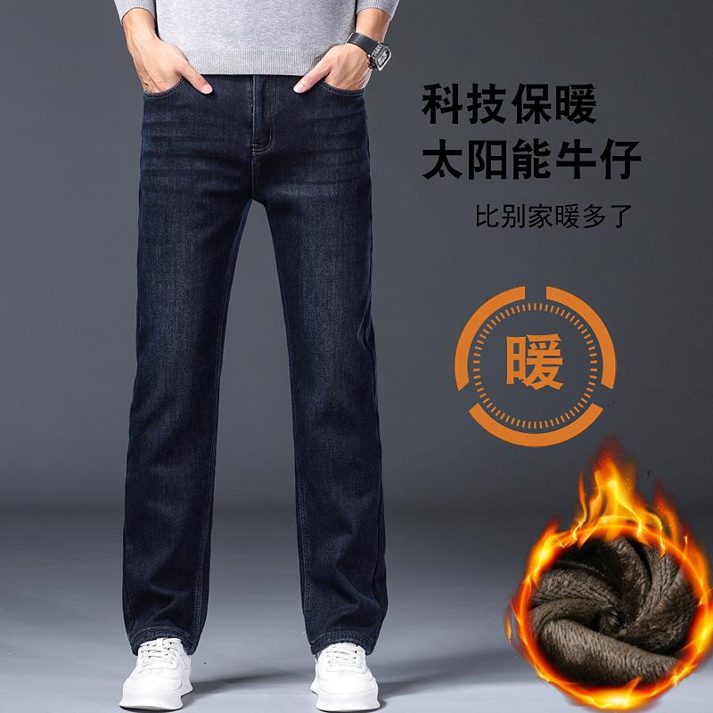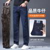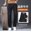 Fleece and thicker autumn and winter new jeans high waist loose casual straight elastic trousers