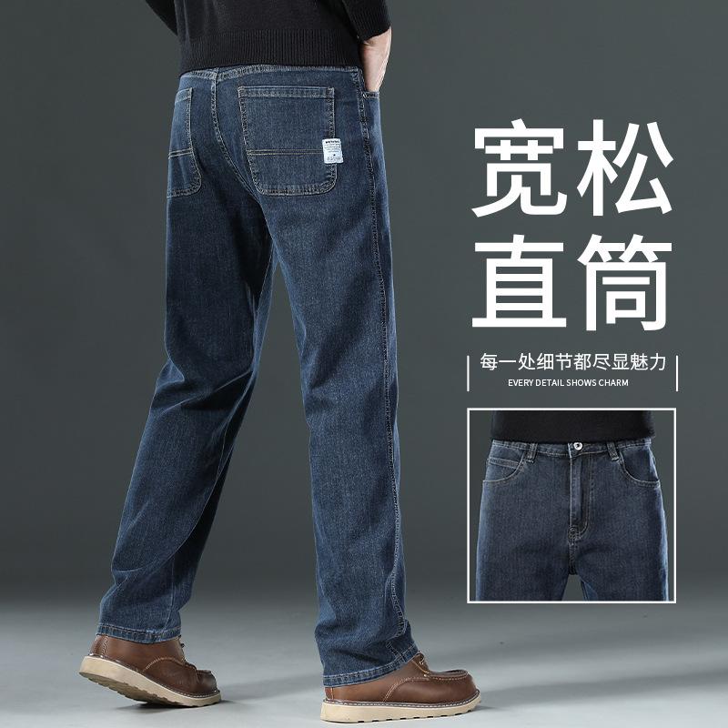 Fleece elastic jeans loose straight autumn and winter thick medium and green casual large size long pants