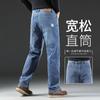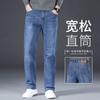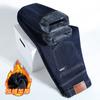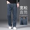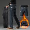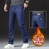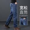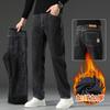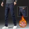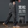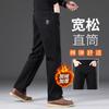 Fleece elastic jeans loose straight autumn and winter thick medium and green casual large size long pants