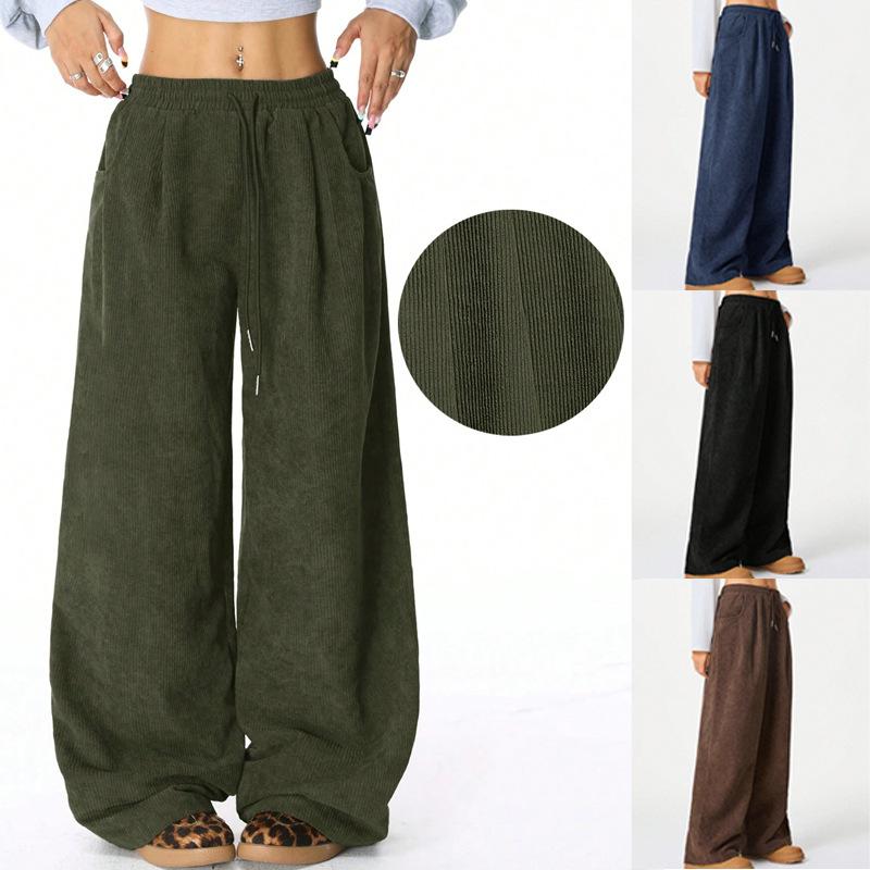 Women's Corduroy Wide Leg Pants with Drawstring Waist Casual Loose High Waist Trousers