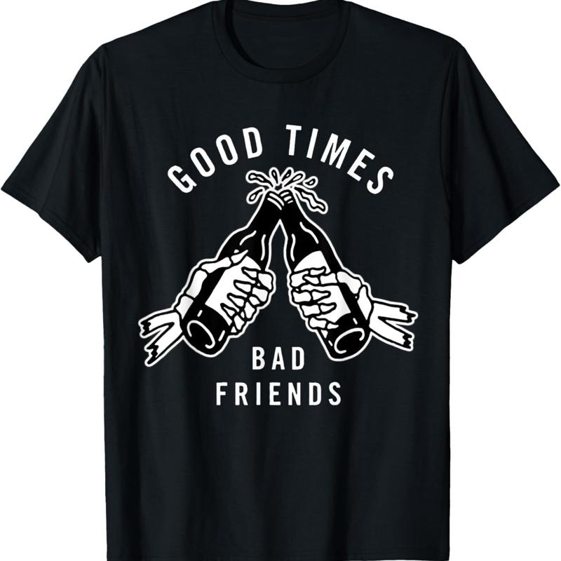 Good Times Bad Friends X Beer Cheers Skeleton Blackwork T Shirt