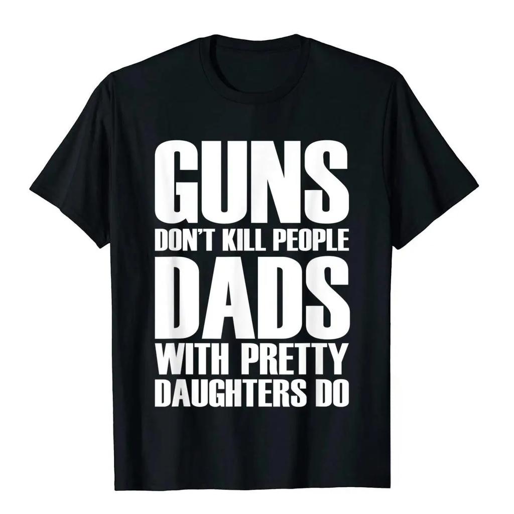 Guns Don't Kill Dads with Beautiful Daughters Kill Men's T-shirts Fun Cotton Men's Tops and Vintage Printed T-shirts Y2K Tops
