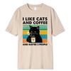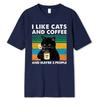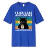 Men's I Like Cats And Coffee pattern printed 100% pure cotton short-sleeved T-shirt casual loose Harajuku top