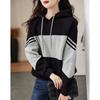 New Winter Korean Style Loose Shoulder Contrast Hooded Sweatshirt Women's Casual Top