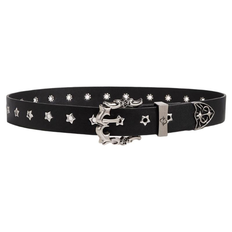 Adjustable Gothic Punk Belt For Women With Detachable Metal Chain And Studded Design