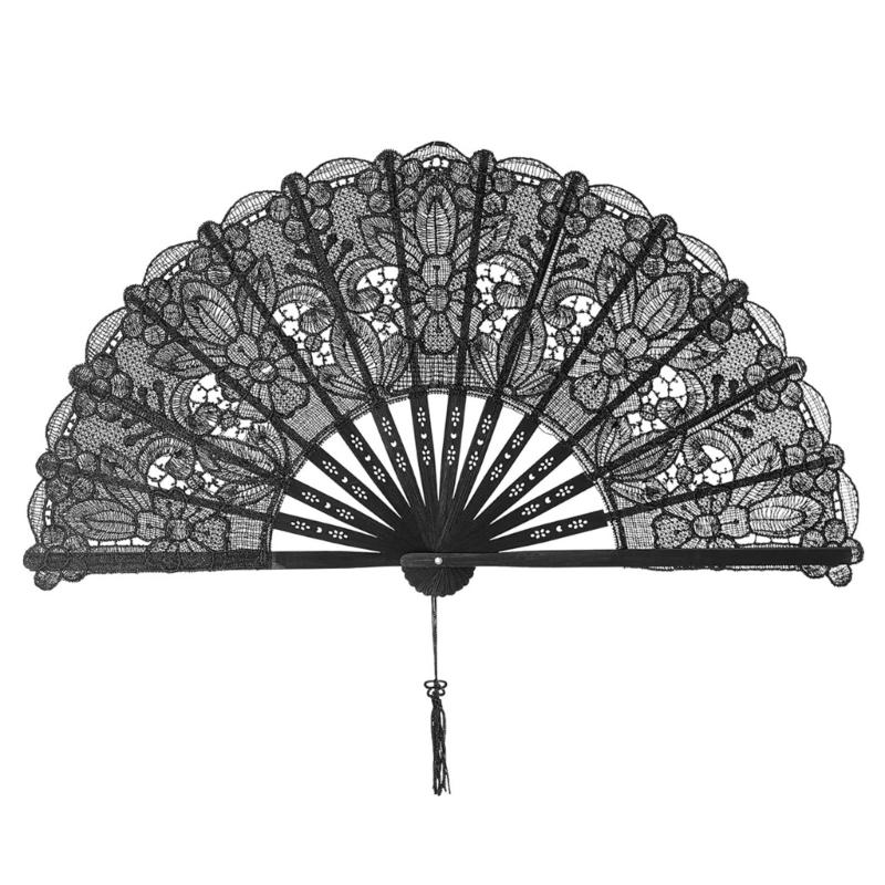 Elegant Anime Bamboo Hand Fan With Intricate Lace Detailing For Cosplay Event And Vintage Themed Parties