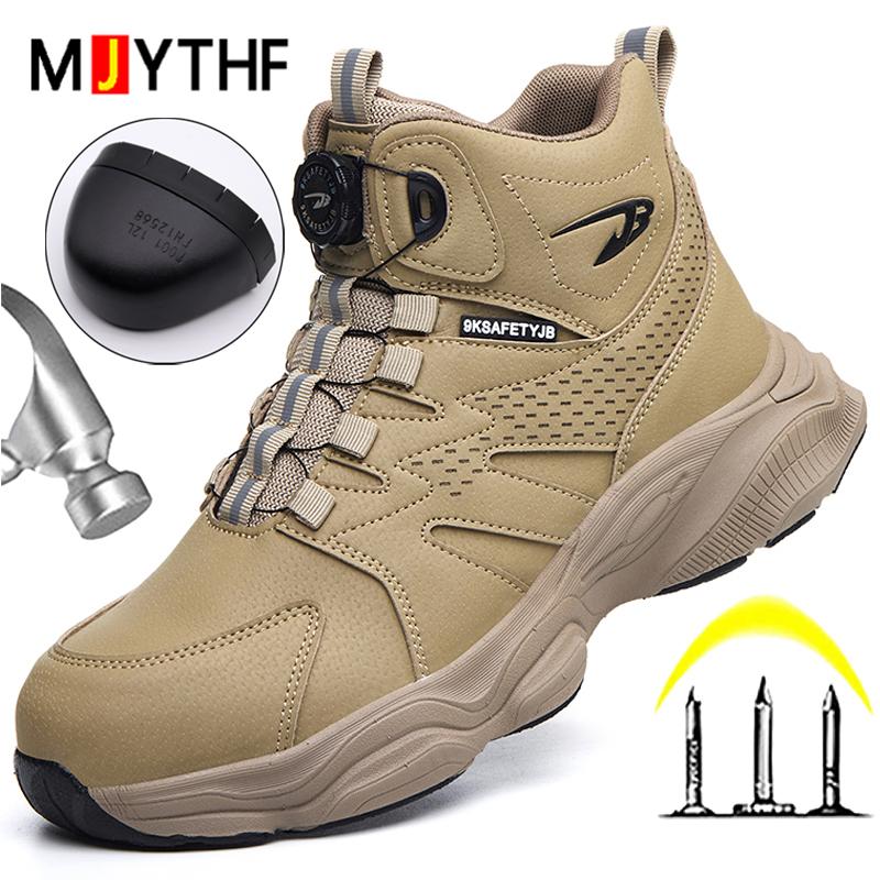 New Rotating button Security Boots Men Work Shoes Anti-smash Anti puncture Safety Shoes Protection Boots Steel toe shoes Fashion