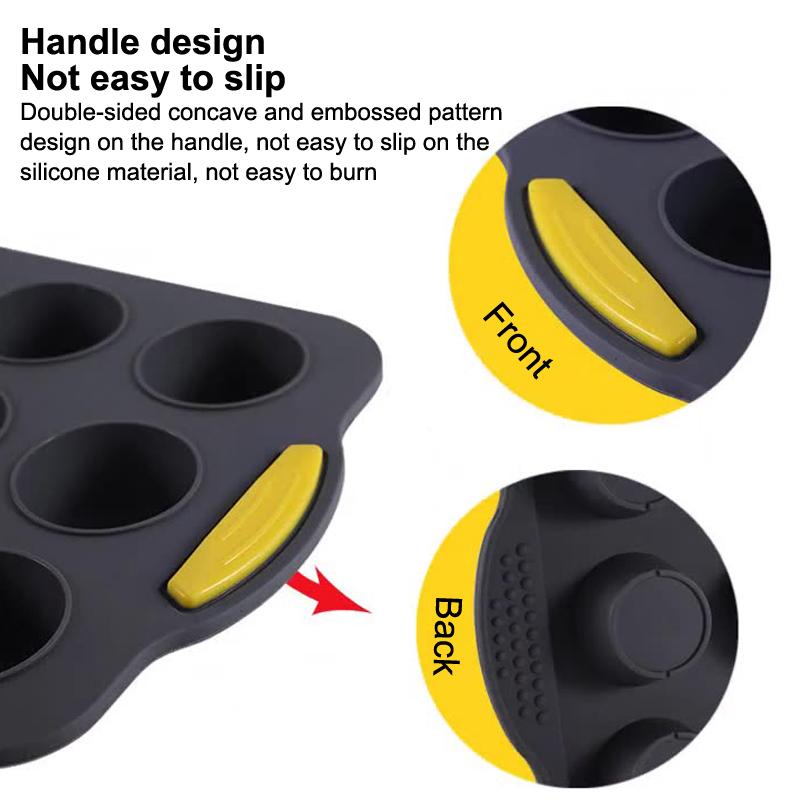 Non-Stick 12-slot Silicone Muffin Pan; Tray with Handle for Effortless Cake Baking
