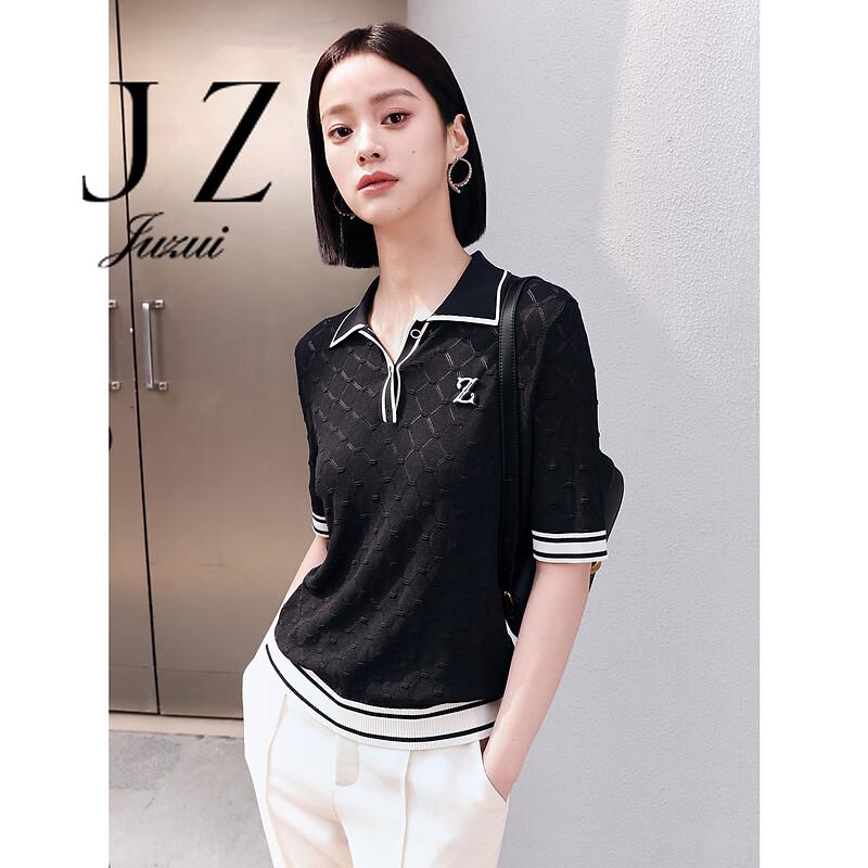JUZUI Women's Colorblock Polo Short Sleeve Knit Top