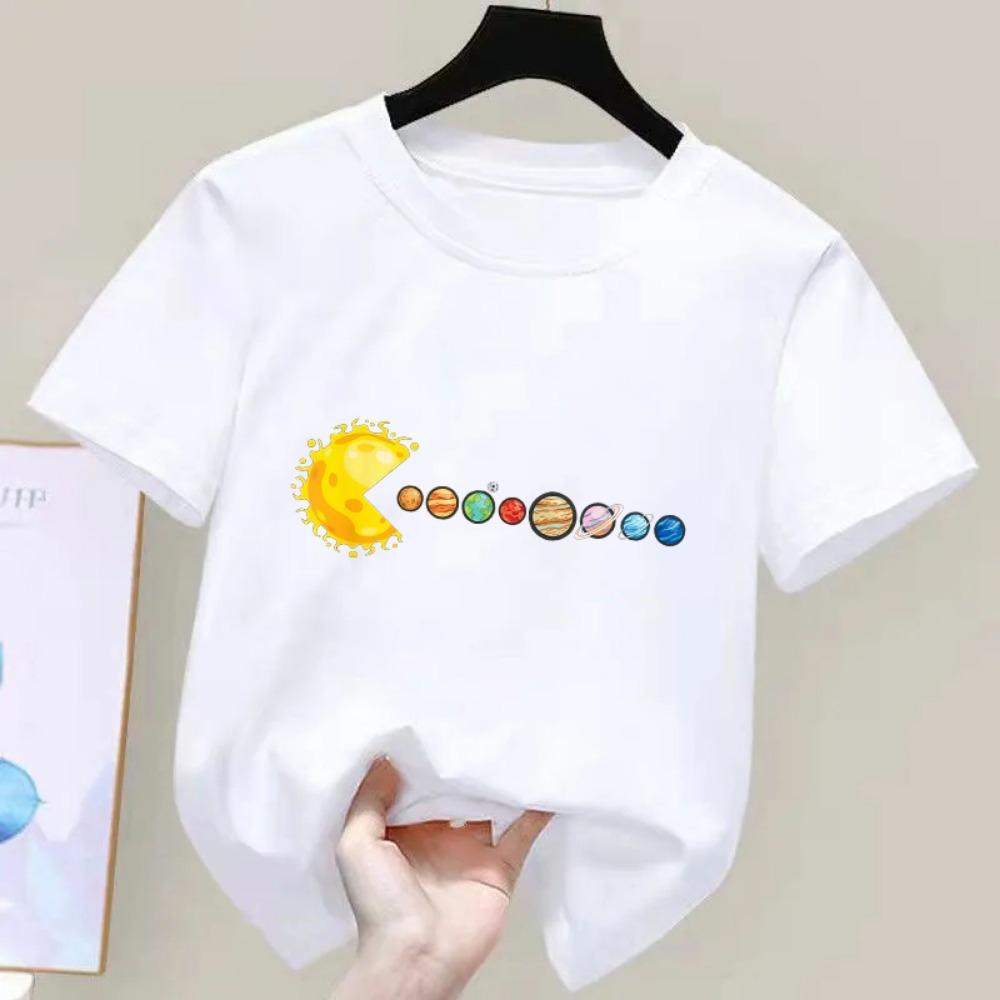 Summer 100% Cotton Children T-shirt Comfortable Casual Solar System Planet Print Round Neck Short Sleeve Kid Tee Top Boys Tshirt